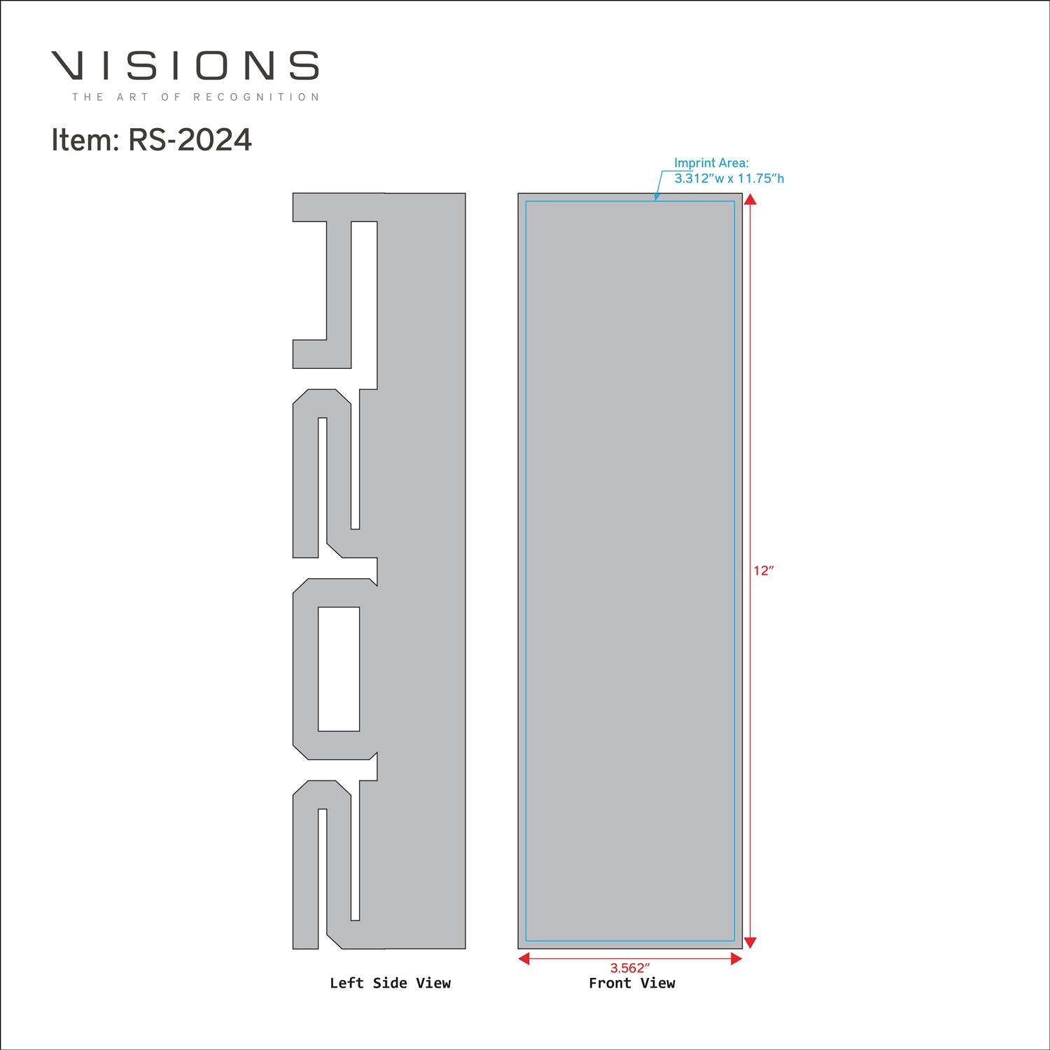 Imprint Area: 3.312" W x 11.75" H