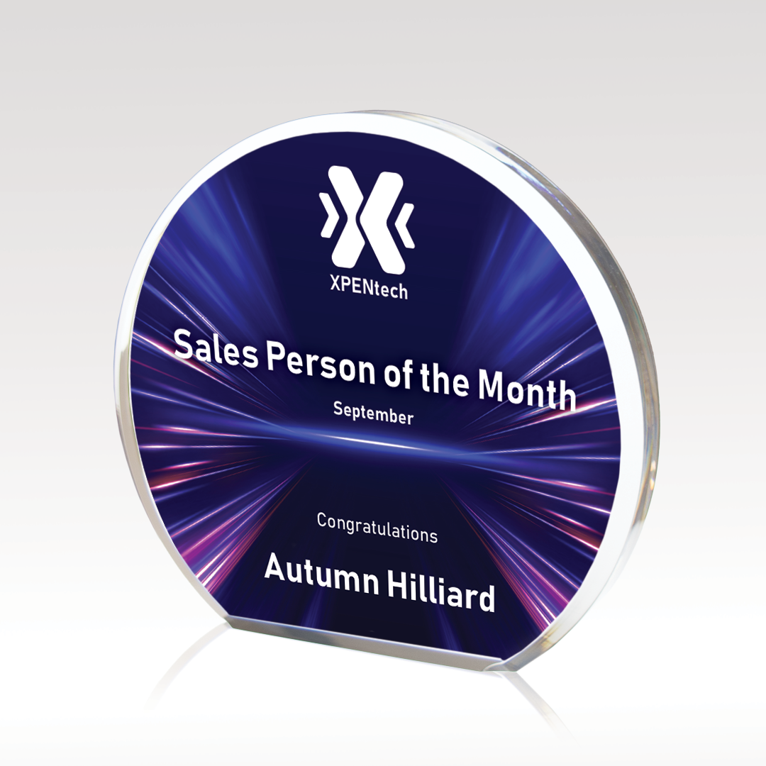 Flood the back of this clear, round acrylic award with color to create a vibrate background for your desired imprint.