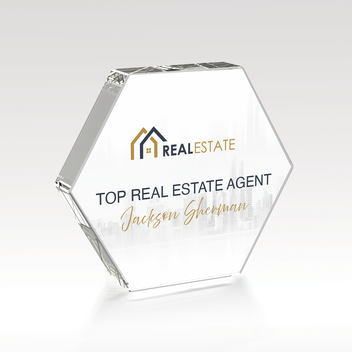 Showcase your brand and your employees’ achievements in full color with this hexagon-shaped acrylic award and create a stunning recognition piece.