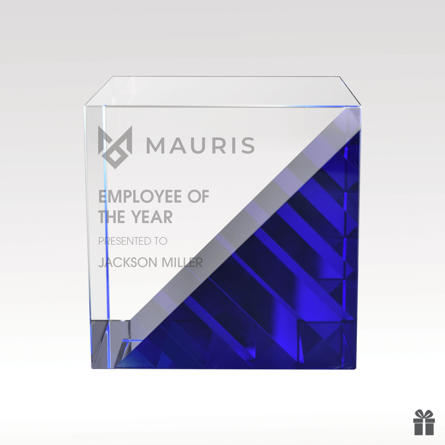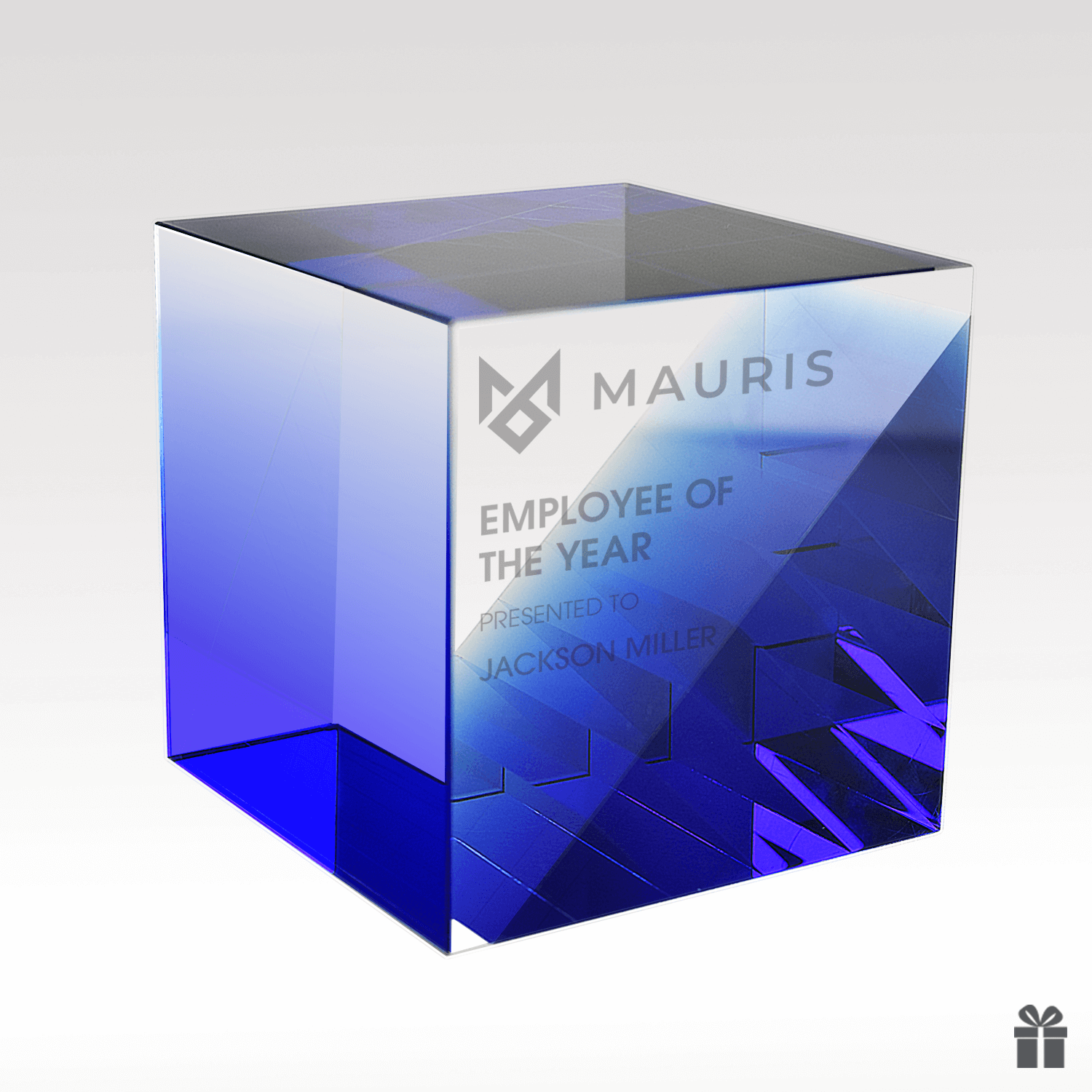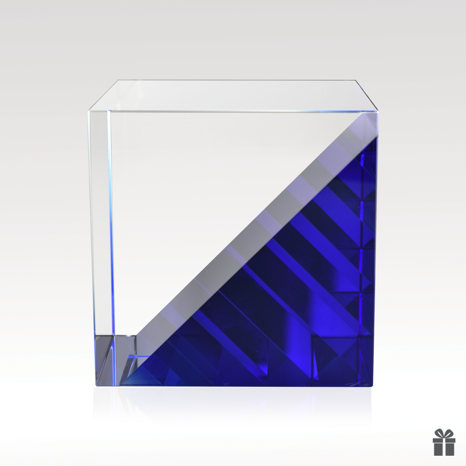 This stunning crystal cube artfully combines clear and blue crystal elements to create a captivating visual experience. The blue crystal accent pieces are strategically placed within the cube, offering fragmented light that dances and shifts with every change in perspective. As you view the piece from different angles, the interplay of clear and blue crystals creates a mesmerizing display of color and reflection, making each glance a unique and dynamic encounter.