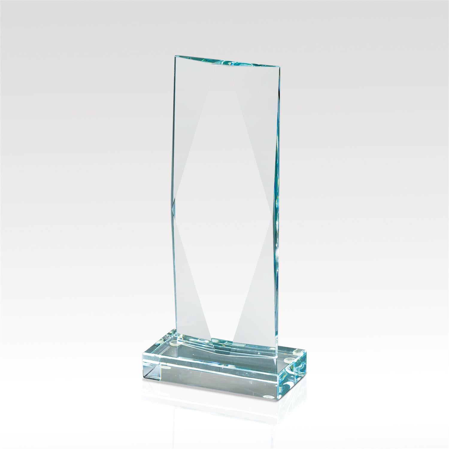 Delicate bevels illuminate this Starphire glass tower captivating everyone's attention.