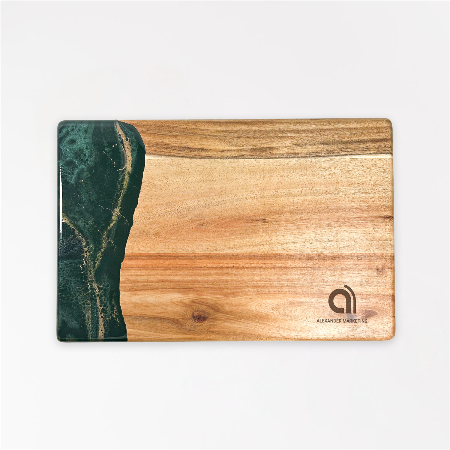 This board is made from gorgeous, high-quality Acacia hardwood and an Eco-friendly epoxy from recycled bio products (UVPoxy), to create a handmade, one-of-a-kind piece of serve ware for your home. This bread board is perfect for serving a group of 6-8 people.