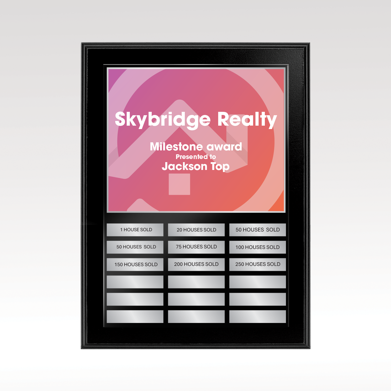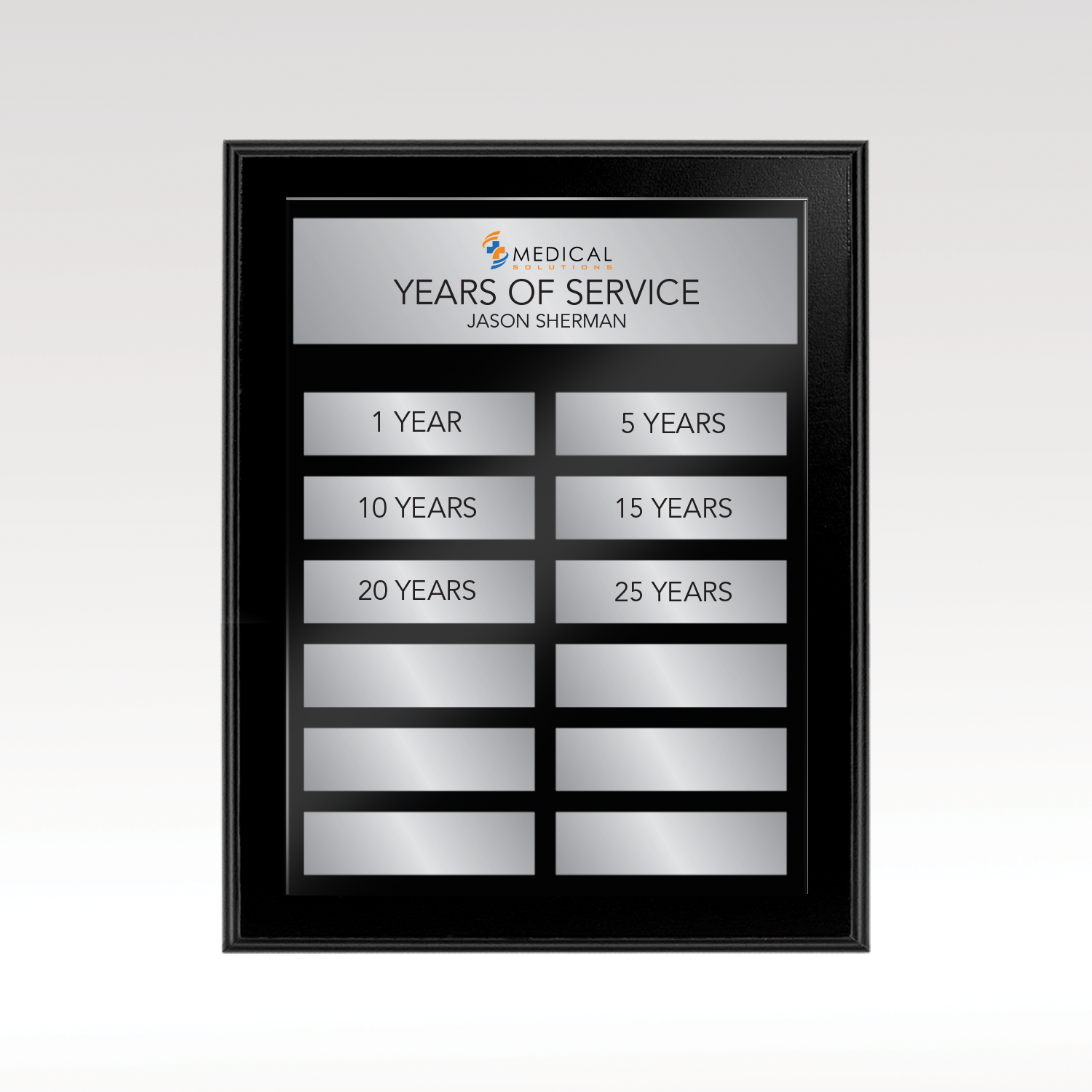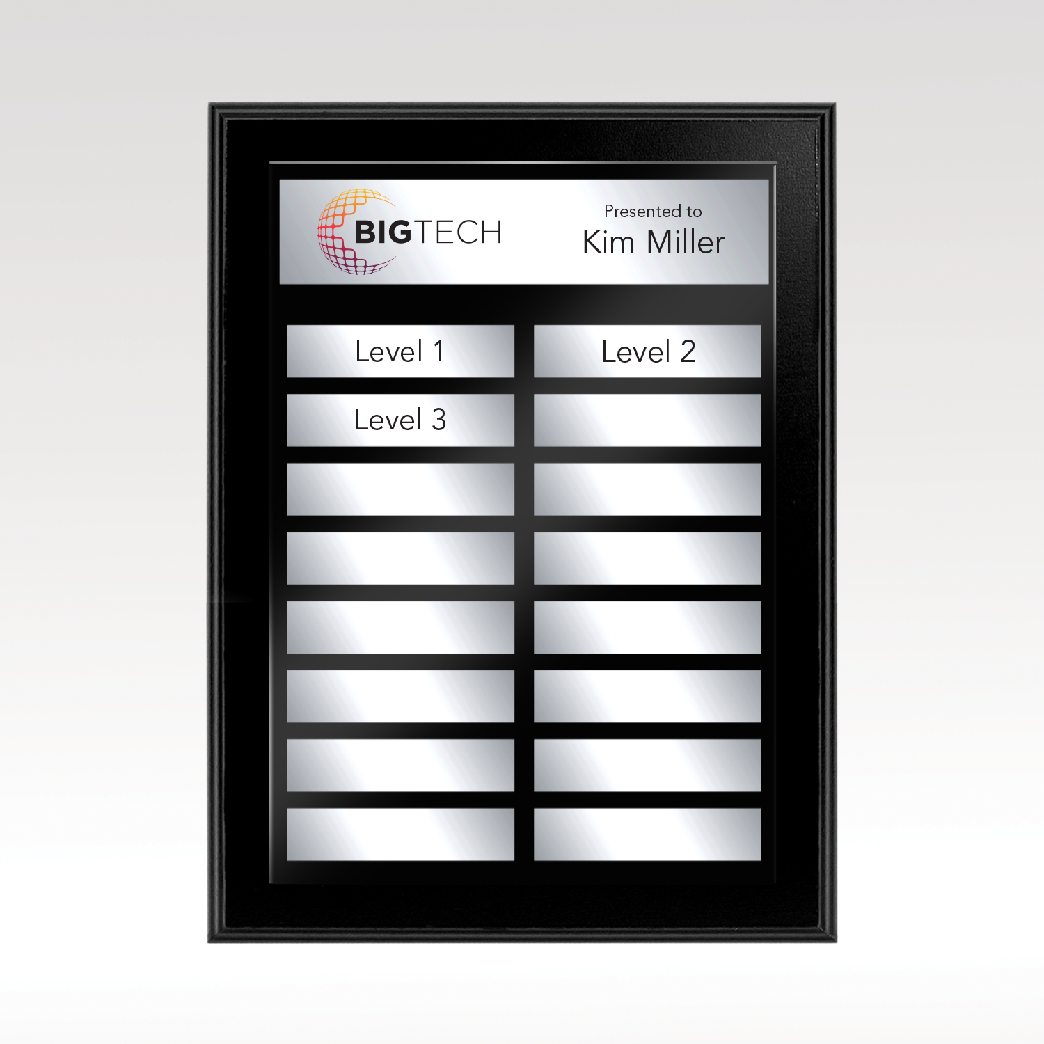 For a contemporary expression of appreciation, this black-finished wood perpetual plaque provides options to continually recognize employees, with your choice of plaque sizes and number of magnetic add-on plates.
