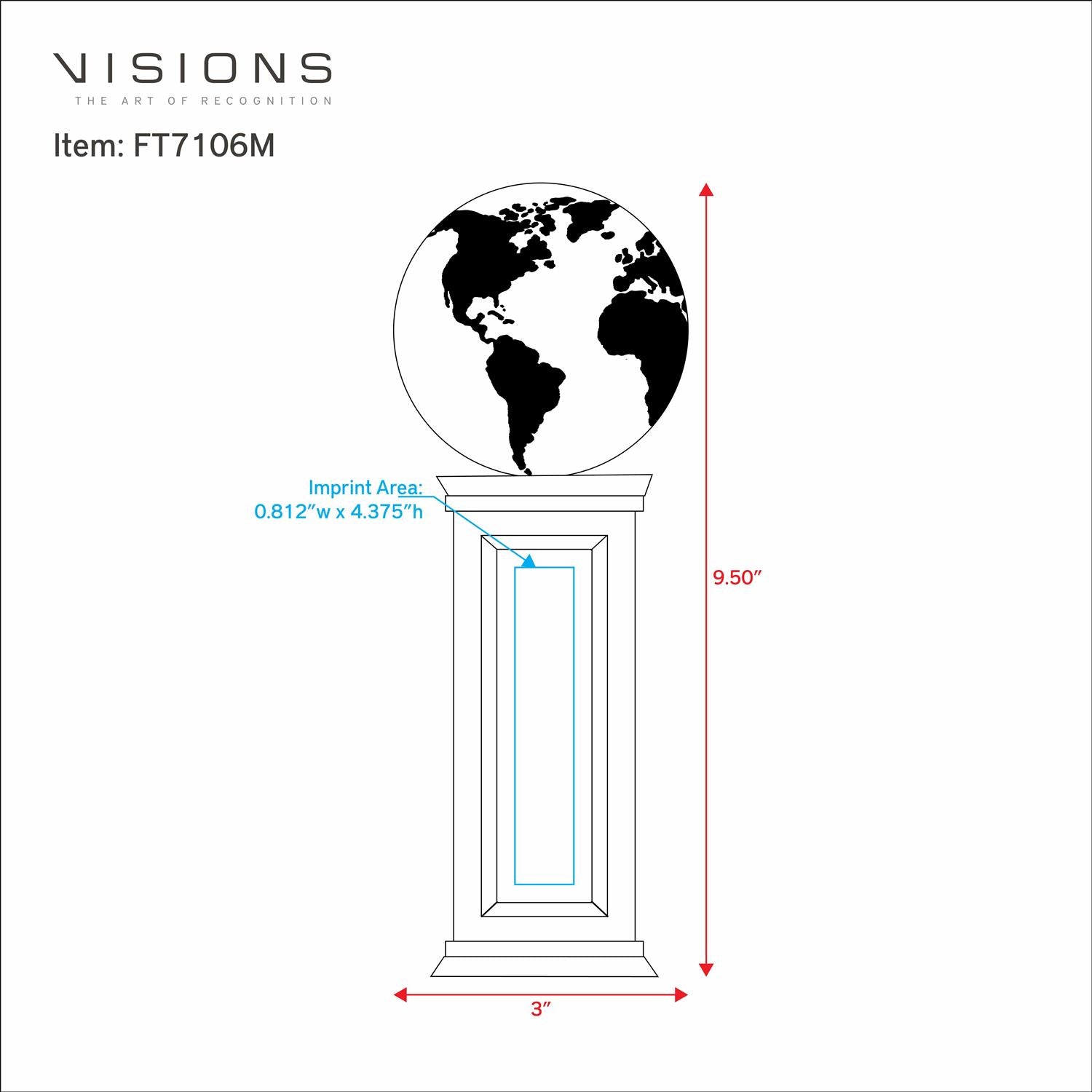 The Horizons reaches to heights in worldly awards. This shimmering metallic finished resin design features a captivating cast world atop a stately column that carries a shimmering black glass panel.