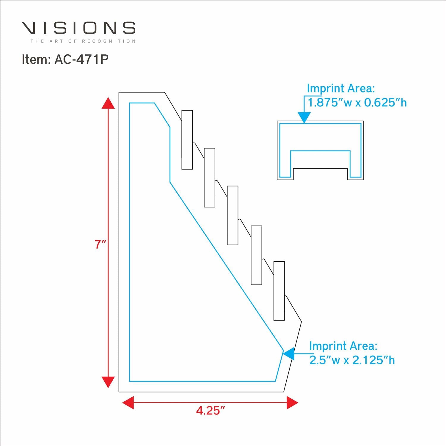 Imprint Area: FRONT: 2.50" W x 2.125" H, ADD-ON: 1.875" L x 0.625" H