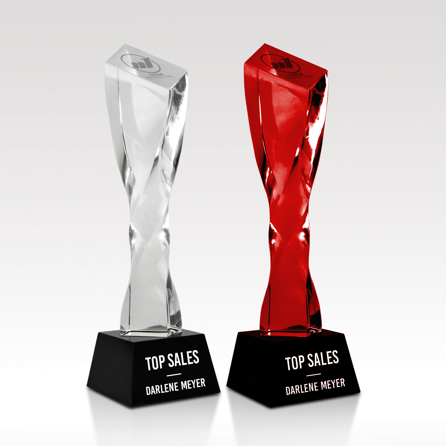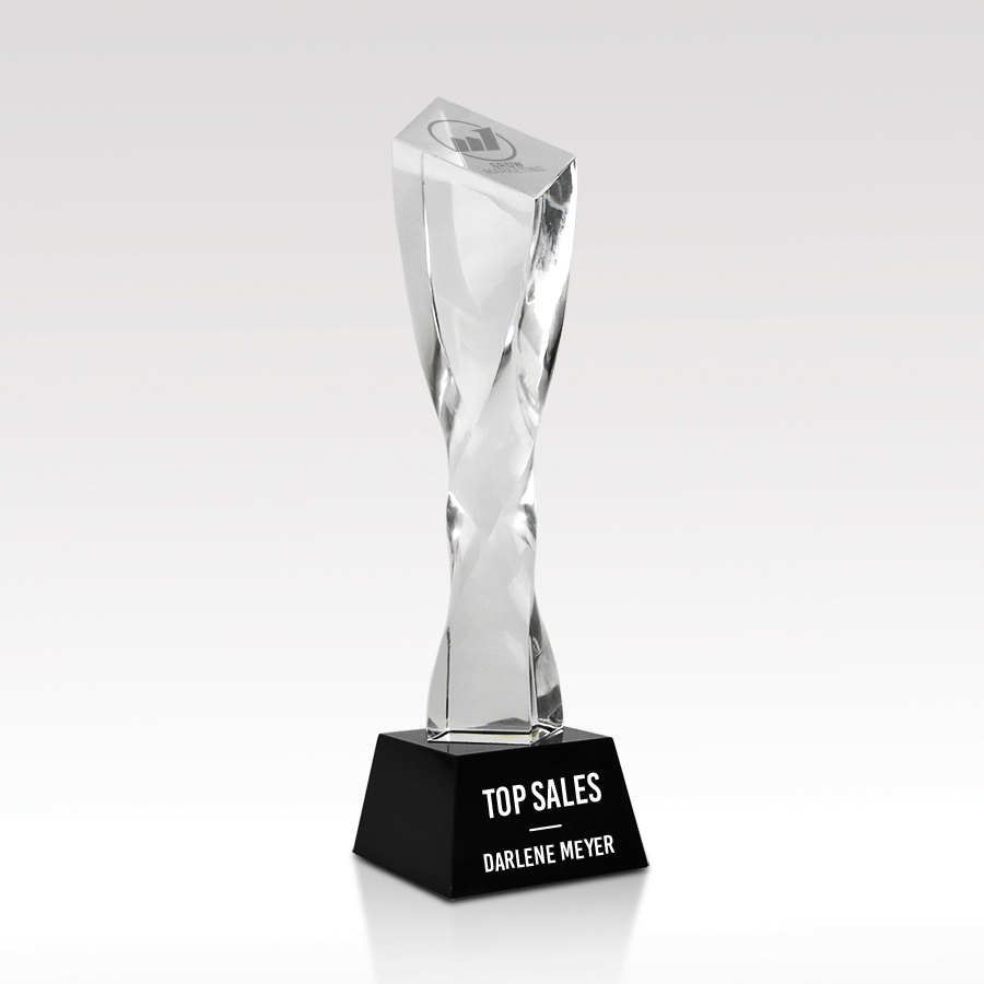 Recognize accomplishments with the stunning Cobra Award. This unique twisted optical crystal design allows for an etched imprint on the top surface of the award and the base.