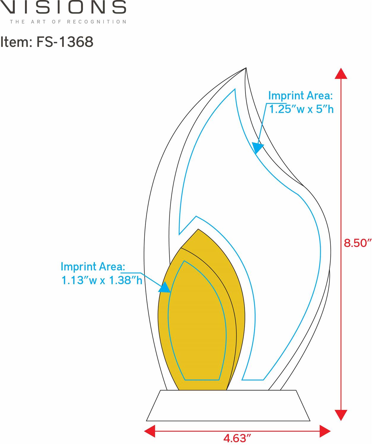 Imprint Area: A Irregular Shape: 1.25" W x 5.00" H, B: 1.13" W x 1.38" H