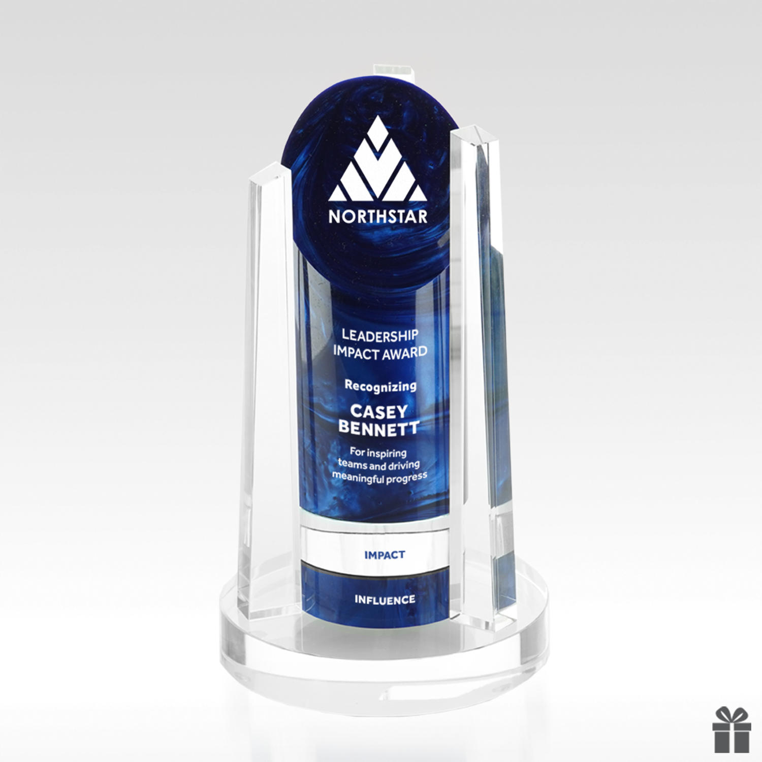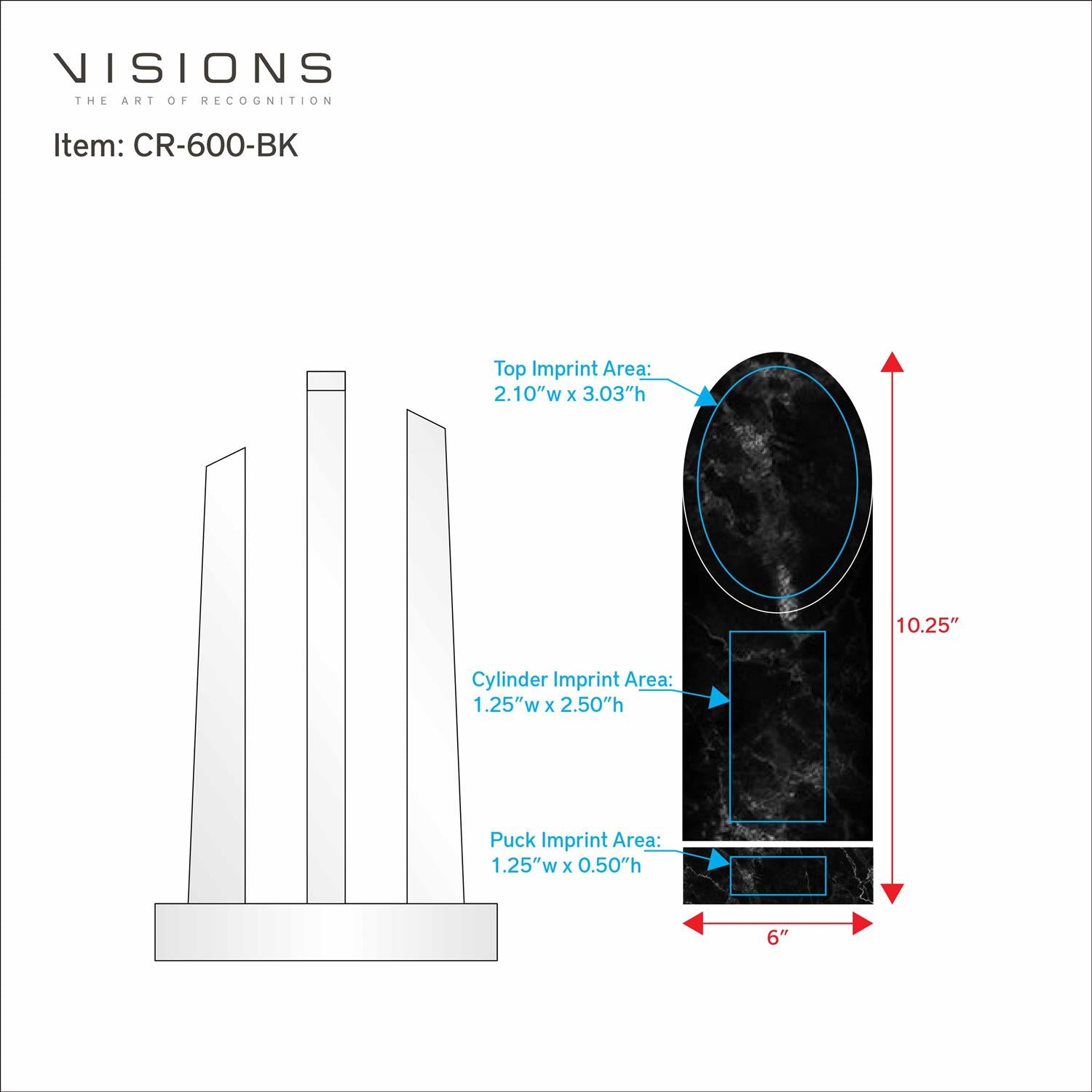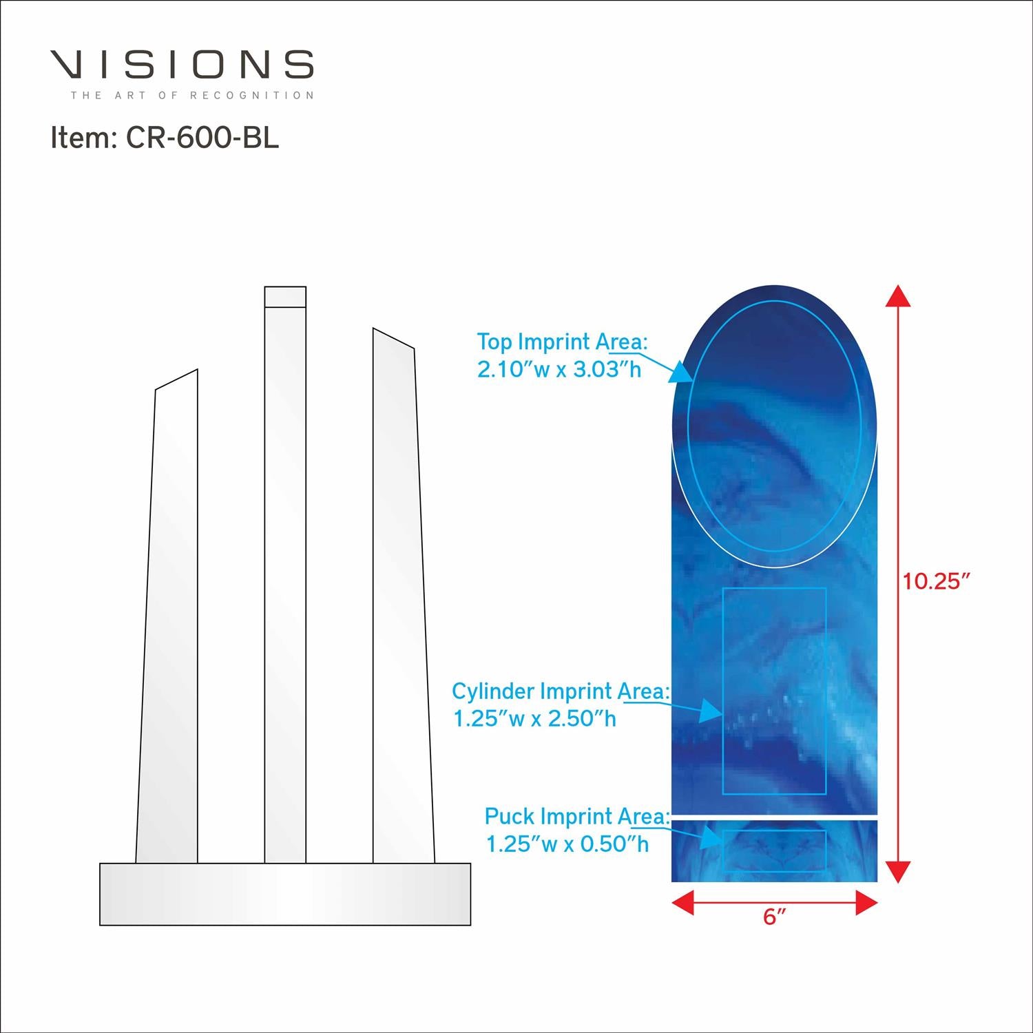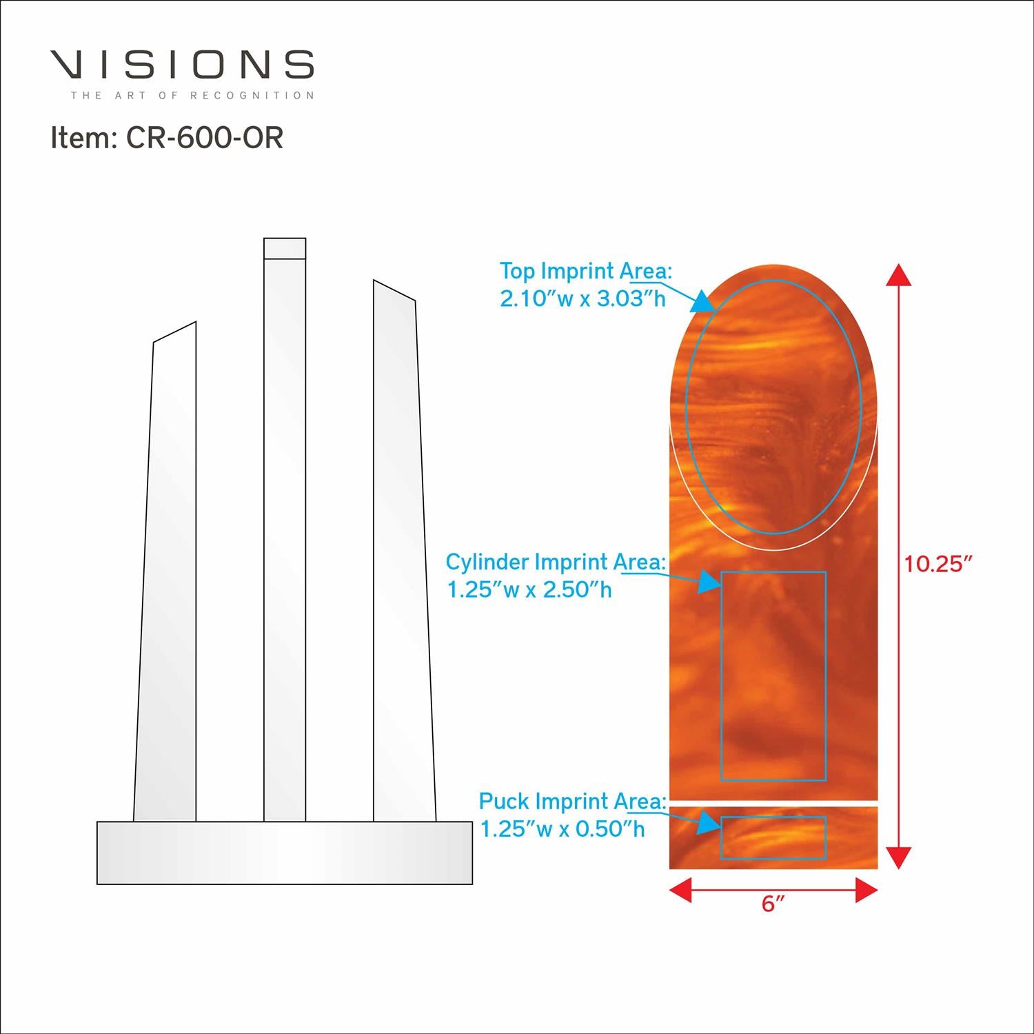 From the Metropolitan Collection, L.A. features a shimmering, swirled resin cylinder flanked by beautiful, optical crystal uprights and companion add-on pucks that are simply set under the cylinder, giving it new height while allowing one to easily recognize future accomplishments. Pucks alternate between resin and optical crystal. Each award includes the resin cylinder, the optical crystal uprights and two pucks (one personalized resin puck and one optical crystal blank “placeholder” for future achievements). The cylinder color options are orange, black or blue resin. Additional pucks sold separately. This perpetual award can hold up to 4 pucks.