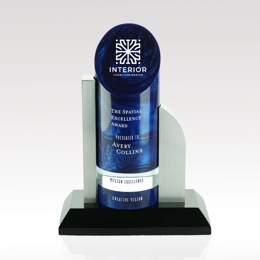 From the Metropolitan Collection and just like the city itself, the New York has all best of everything. Brushed silver metal uprights atop a black resin base support a glistening swirled resin cylinder. Companion add-on pucks are set under the cylinder, allowing one to keep elevating the cylinder as you keep rewarding the lucky recipient. Pucks alternate between resin and optical crystal. Each award includes the resin cylinder, the metal uprights and two pucks (one personalized resin puck and one blank optical crystal puck “placeholder” for future achievements). The cylinder color options are orange, black or blue resin. Additional pucks sold separately. This perpetual award can hold up to 4 pucks.