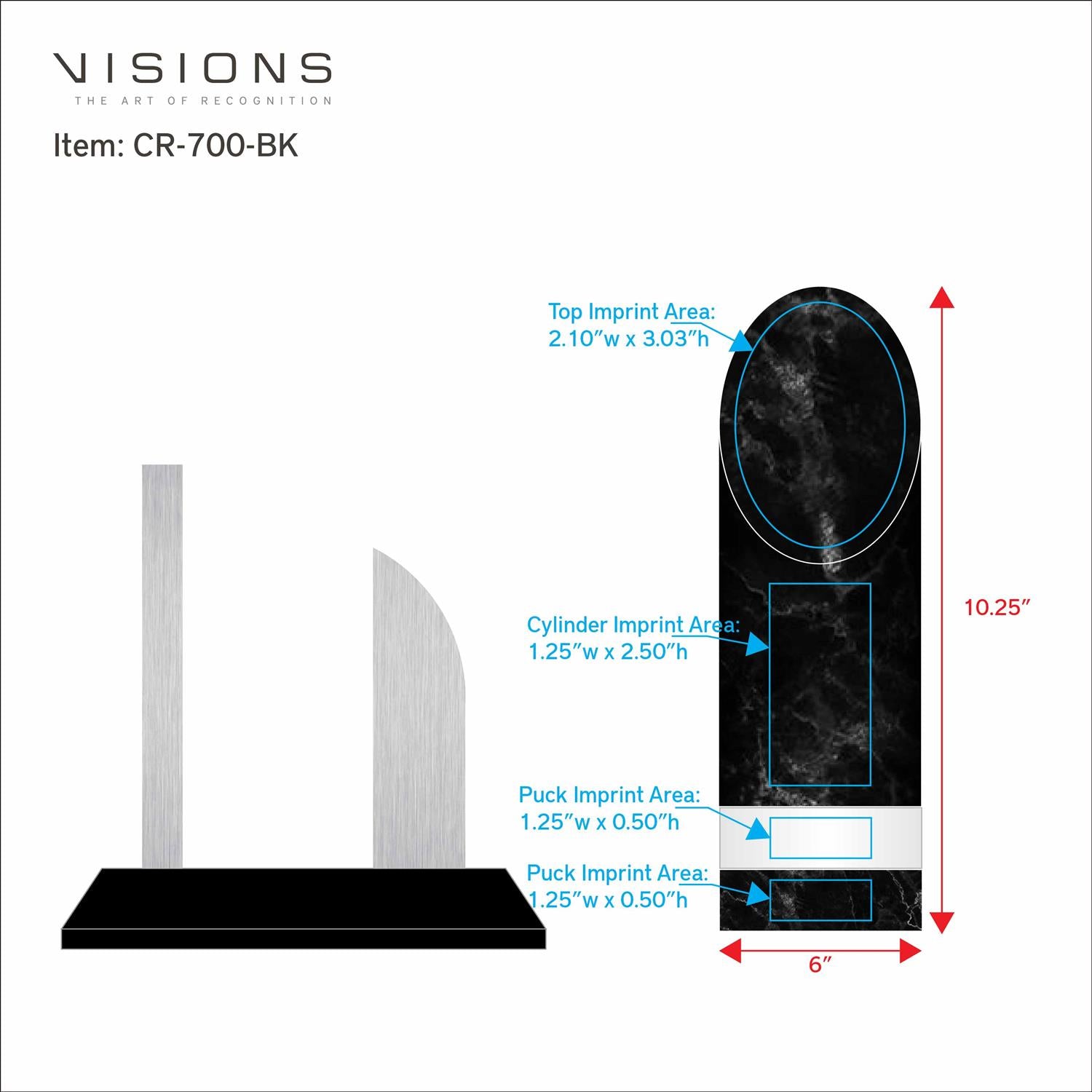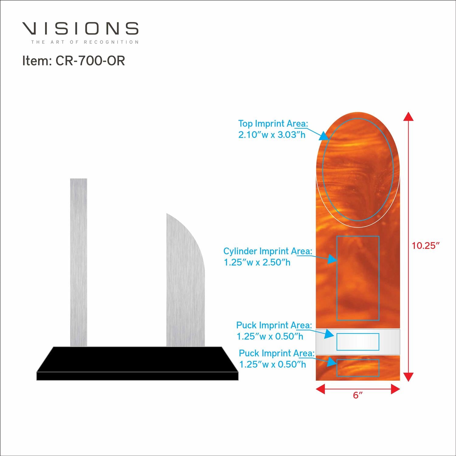 Imprint Area: UPRIGHT TOP: 1.25" W x 2.50" H, UPRIGHT FRONT: 1.25" W x 2.50" H
