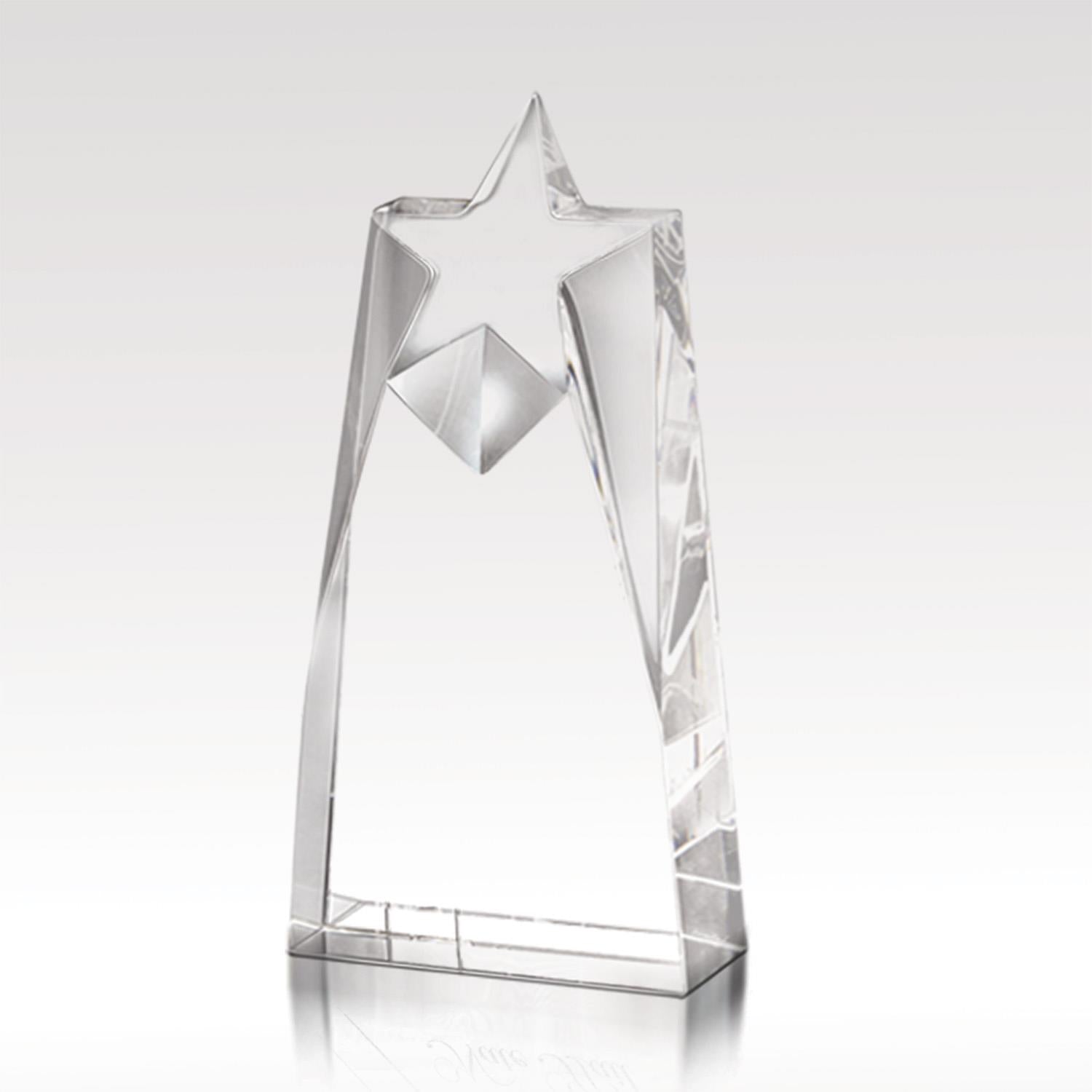 Exquisite optical crystal takes the staring role in this multi-faceted award. The brilliant rising star glistens attracting well deserved attention.